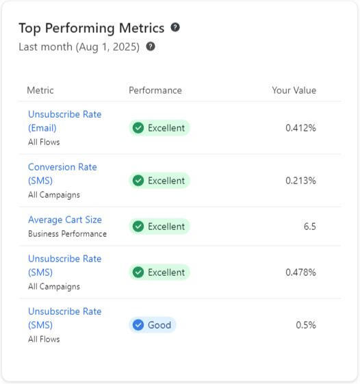 For this client, I’ve delivered top-performing metrics that prove just how effective a well-executed strategy can be:- Email flows: Only 0.412% unsubscribe rate, keeping their list healthy and engaged.- SMS campaigns: 0.213% conversion rate and a 6.5 average cart size, showing real revenue impact.- SMS messages: Just 0.478% unsubscribe rate, with SMS flows holding steady at 0.5% - well below industry averages.These numbers reflect not just strong execution but a strategy that retains customers and maximizes Monthly Recurring Revenue (MRR).I'll manage all of this for you, from writing to strategy, so you can focus on scaling your business while I grow your revenue.